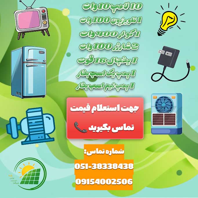- 1 عدد تلویزیون 100 وات برای مدت زمان 7 ساعت